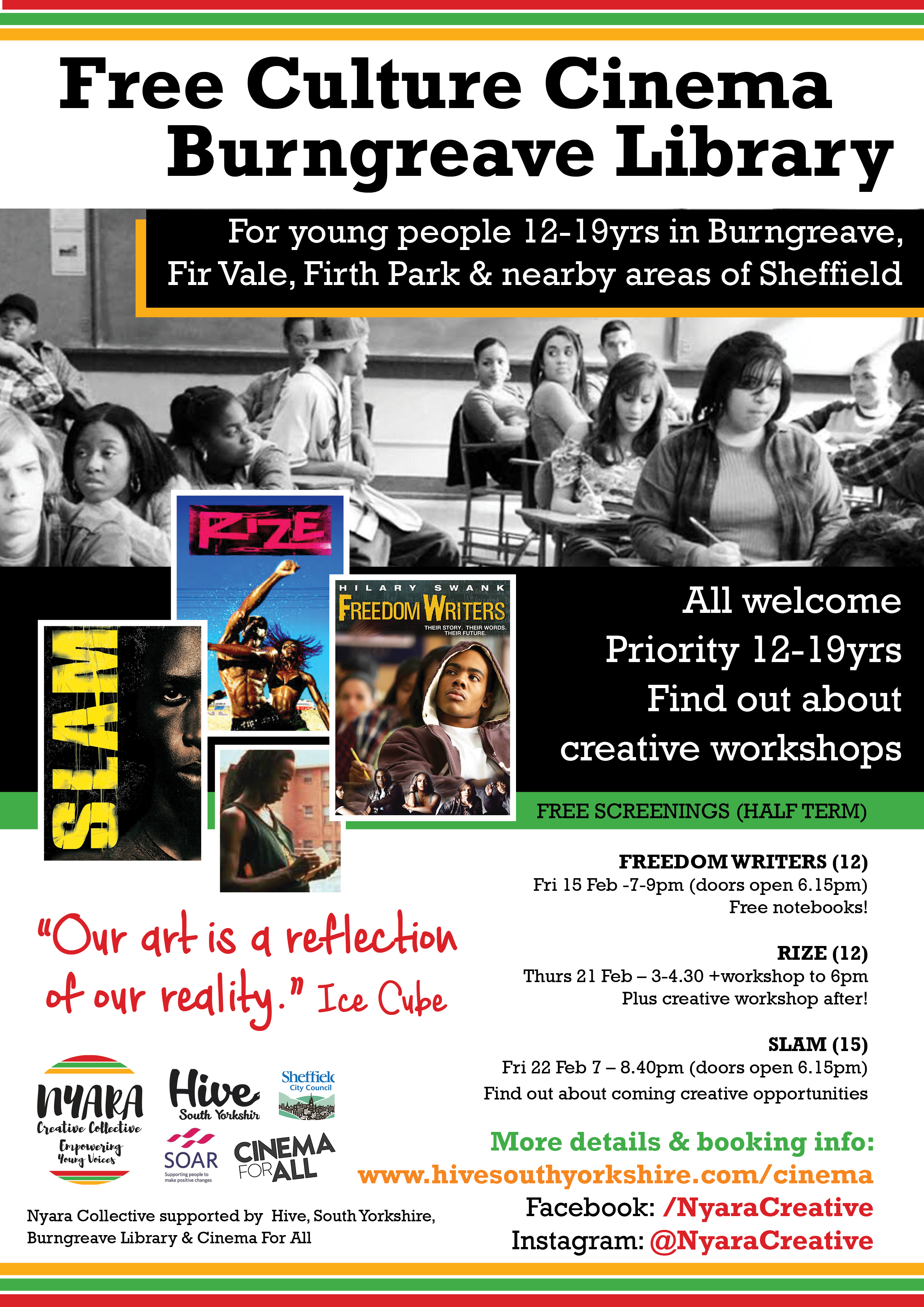 If you know people on the north side of Sheffield (Fir Vale, Firth Park, Burngreave and nearby) please let them know about this great set of films happening over half term for 12 to 19s (15th, 21st & 22nd Feb)